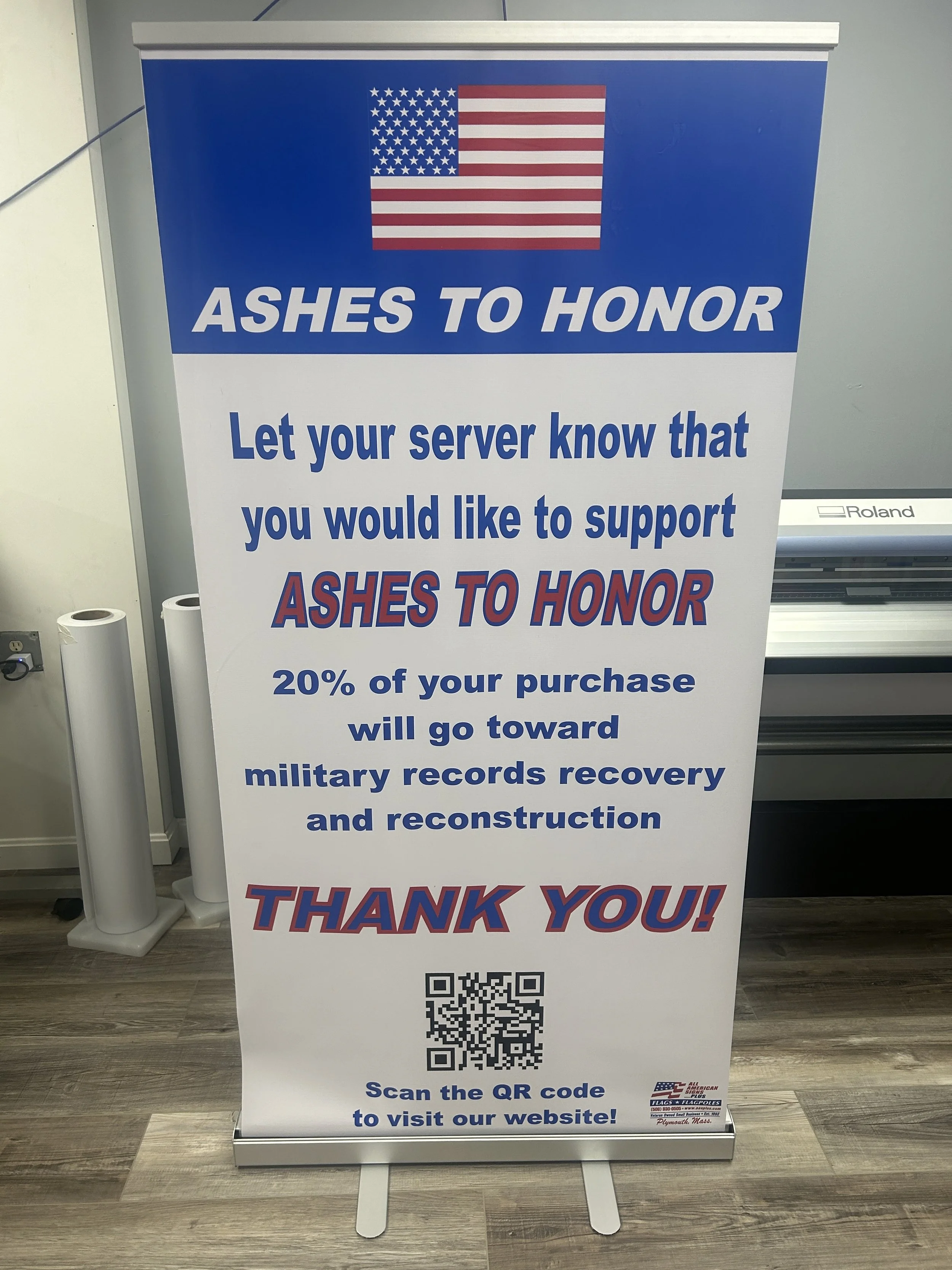 Vertical retractable banner designed and fabricated in-house for a non-profit organization