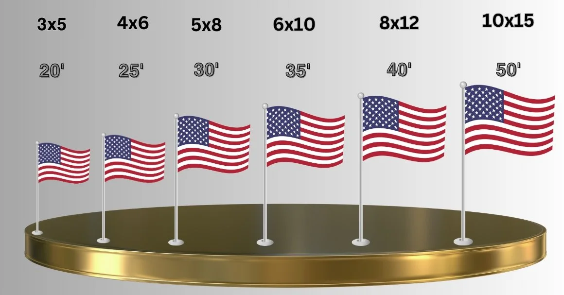 If you have a 6' flagpole mounted to your home or building at ground level, a 3'x5' American flag is the perfect size. This is typical and suggested for most homes or businesses which have a flagpole mounted to the side of the structure. When flying a flag on a flagpole, the standard rule of thumb is that the the flag will be one quarter of the height of the pole. For example, a 25-foot residential flagpole would fly a 4x6’ flag. A great way to determine your ideal flag and flagpole dimensions is to call us directly to discuss your project with us. We have installed flagpoles as small as 20’ to as large as 100’ - no project is too big or small for our team!